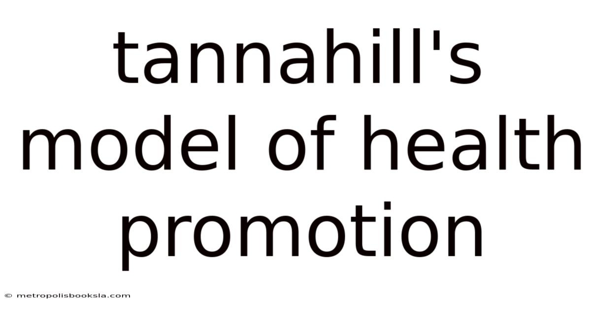Tannahill's model of health promotion provides a comprehensive framework for understanding and implementing effective health initiatives. Even so, this model, developed by the influential health educator Adrian Tannahill, goes beyond simply focusing on individual behavior change and incorporates broader societal factors that influence health outcomes. Think about it: this article will delve deep into Tannahill's model, exploring its three main components – health education, prevention, and health protection – and examining its strengths, limitations, and contemporary relevance. Understanding this model is crucial for anyone involved in public health, health education, or social work, providing a solid foundation for designing and implementing effective health promotion strategies That's the part that actually makes a difference. Still holds up..
