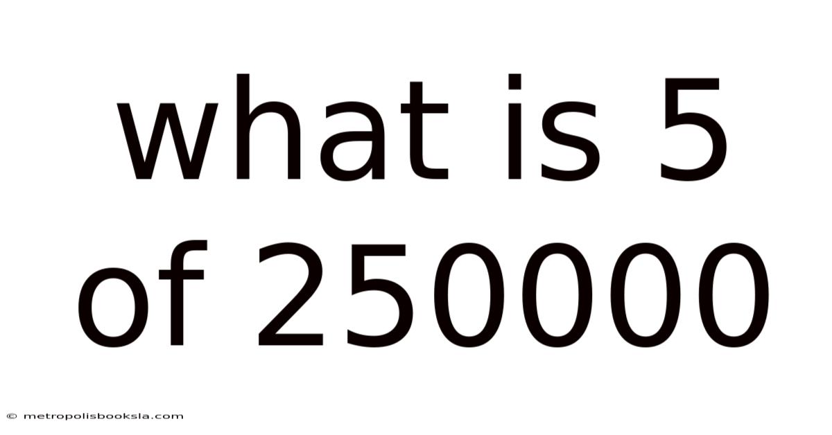 The seemingly simple question, "What is 5/250000?" opens up a world of understanding regarding fractions, decimals, and percentages. By mastering the ability to convert between these forms, you will enhance your skills in various quantitative areas, from everyday finance to complex scientific analysis. Understanding these fundamental mathematical concepts empowers you to interpret data, solve problems, and make informed decisions in numerous aspects of life. The small proportion represented by 5/250000, while seemingly insignificant at first glance, holds vital implications across various fields, emphasizing the importance of understanding and accurately interpreting even the smallest numerical values. Remember the methods described above—direct calculation, simplification, and conversion to percentage—and you'll be well-equipped to handle similar calculations with confidence and precision.